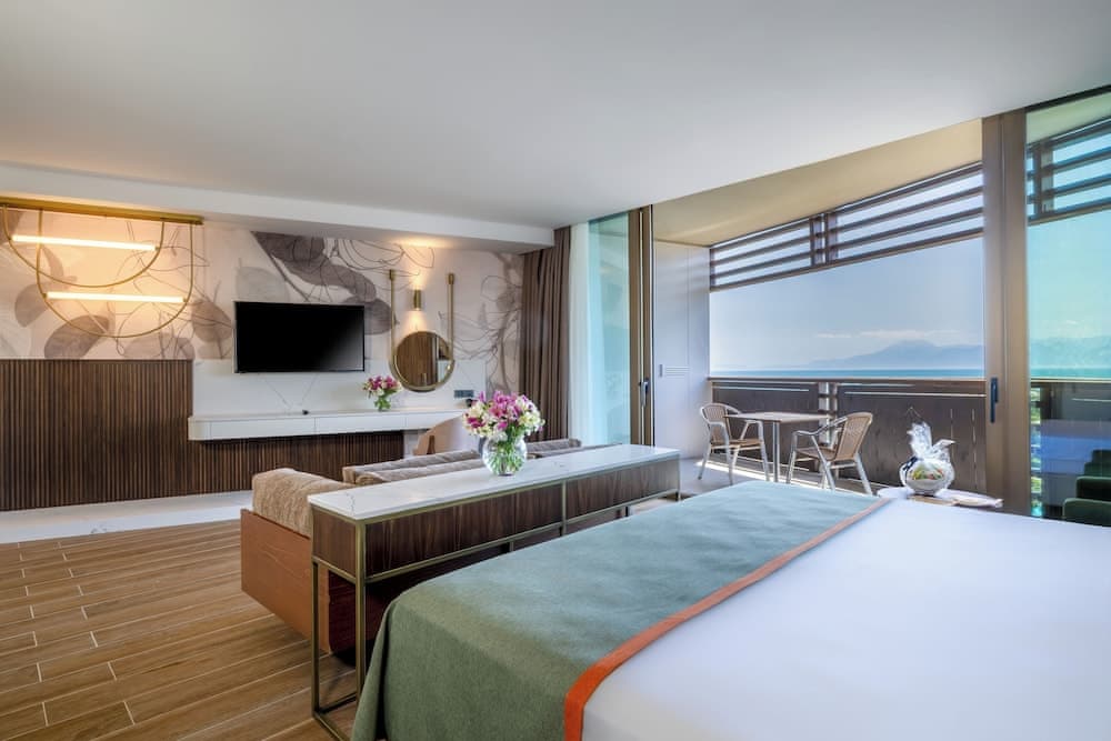 Balcony, Sea view, Air conditioning, Safety deposit box, Desk, Bath or shower, Private bathroom, Hairdryer, Free toiletries, Wi-Fi, Flat-screen TV, TV, Satellite channels, Telephone, Minibar, Tea/Coffee set, Towels, Linen, Water bottle