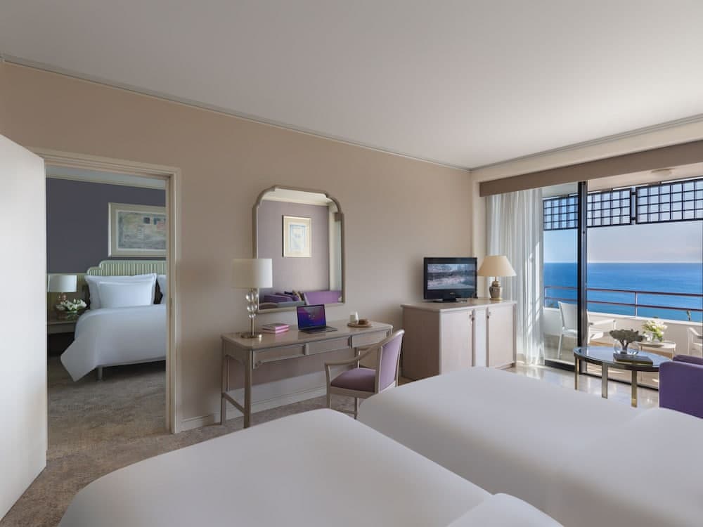 Sea view, Air conditioning, Soundproofing, Safety deposit box, Wardrobe/Closet, Ironing facilities, Black-out curtains, Cleaning products, Can be interconnected, Shower, Private bathroom, Hairdryer, Bathrobe, Slippers, Free toiletries, Wi-Fi, Flat-screen TV, TV, Cable channels, Satellite channels, Telephone, Minibar, Tea/Coffee set, Outdoor furniture, Towels, Linen, Pillow selection, Water bottle