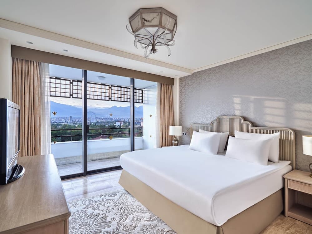 City view, Air conditioning, Soundproofing, Safety deposit box, Wardrobe/Closet, Ironing facilities, Black-out curtains, Cleaning products, Can be interconnected, Shower, Private bathroom, Hairdryer, Bathrobe, Slippers, Free toiletries, Wi-Fi, Flat-screen TV, TV, Cable channels, Satellite channels, Telephone, Minibar, Tea/Coffee set, Outdoor furniture, Towels, Linen, Pillow selection, Water bottle